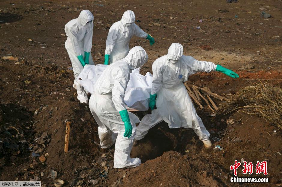 当地时间12月21日,塞拉利昂弗里敦,埃博拉医护人员将感染者尸体运往公墓掩埋。据悉,塞拉利昂感染埃博拉人数急剧上升,在世界上确诊的18603名埃博拉感染者中,塞拉利昂的患者占超过一半。