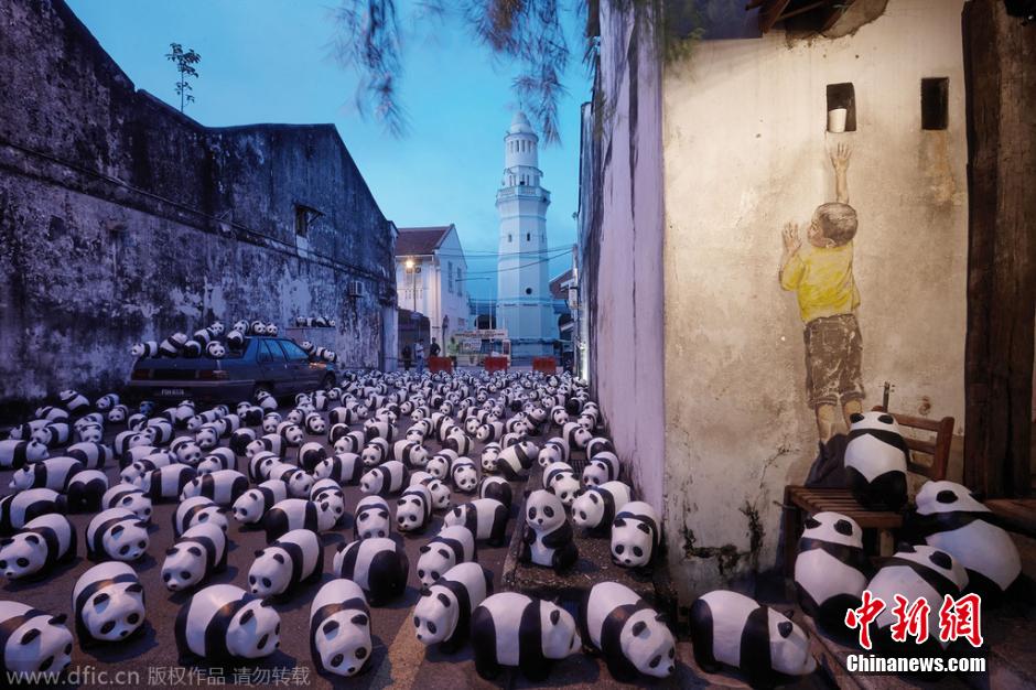 当地时间2014年12月21日,马来西亚吉隆坡,苏丹阿都沙末大厦前的广场上展出了1600只纸质熊猫。由法国艺术家Paulo Grangeon打造的这1600只纸质熊猫正在进行全球巡展。