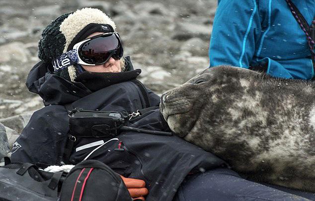 据英国《每日邮报》12月20日报道,近日,南极洲利文斯顿岛,一名女游客Lea McQuillan坐下来,想休息一下,想不到却被一头海象宝宝当了肉垫,野生动物摄影师Roy Mangersnes拍摄到了这滑稽的一幕,只见小海象先是闻了闻Lea的手,随后立刻认定这是一个好肉垫,很快就整个身体爬到了Lea身上,开始呼呼大睡,一睡就是好几个小时。(网页截图)
