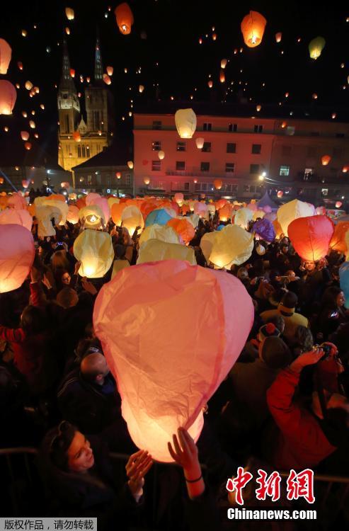 当地时间2014年12月22日,克罗地亚萨格勒布,约3000人参与了由当代艺术家Kresimir Tadija Kapulica组织的放天灯活动。该活动鼓励人们将自己的愿望送往茫茫宇宙。