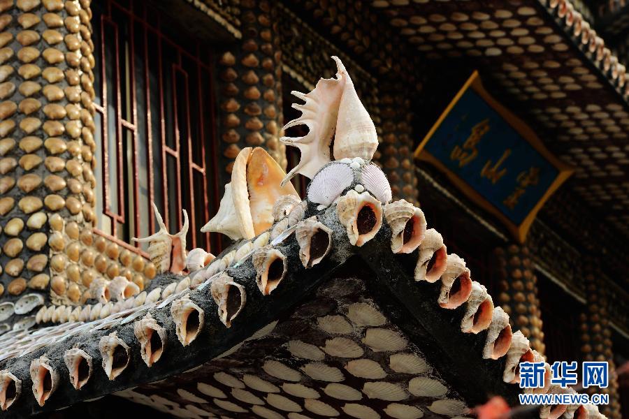 在山东青岛黄岛区灵山岛上,有一座引人注目的“贝壳楼”。该楼由岛上居民肖永生精心打造而成,小楼的装潢用了500多个品种的100多万枚贝壳。2014年6月中旬,“贝壳楼”作为展览场所对外开放,展出肖永生收集的1000多件反映海岛居民生活的物品。新华社发(俞方平 摄)