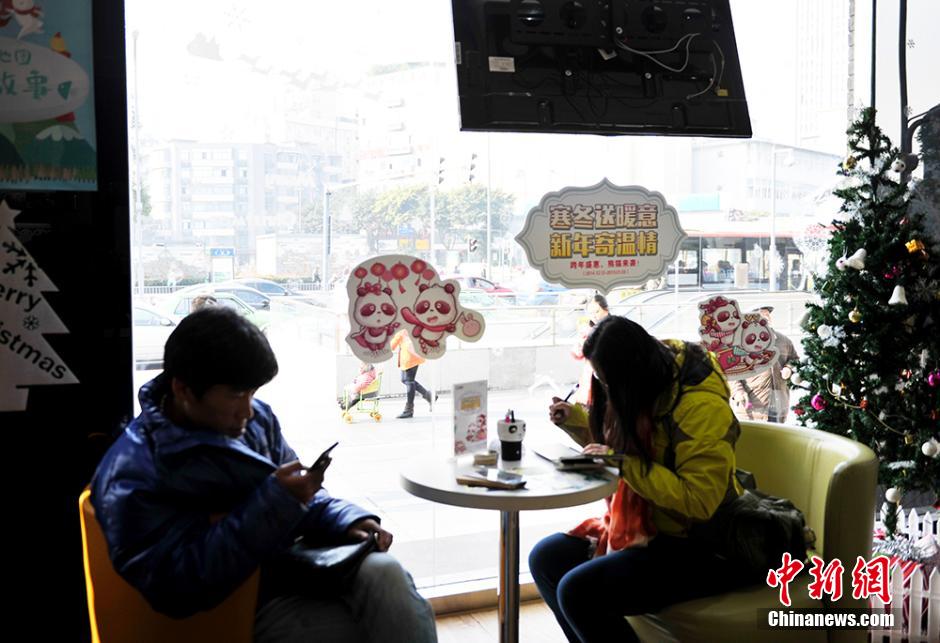 图为民众在“熊猫邮局”书写明信片。 安源 摄