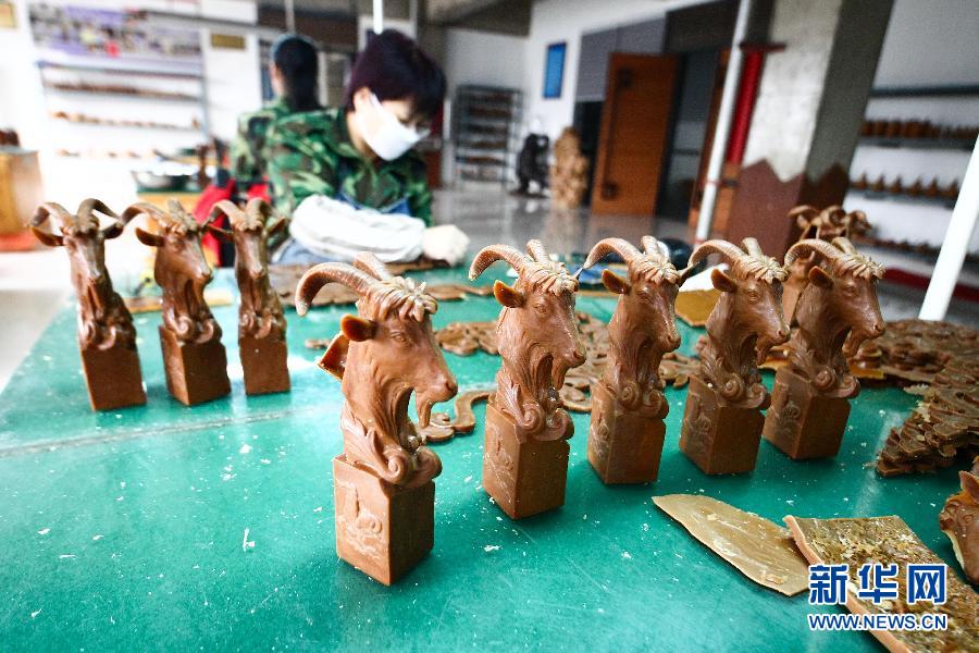 12月24日,在山东省潍坊市临朐县华艺雕塑公司,工作人员赶制铜羊工艺品。 随着羊年的临近,山东潍坊等地的工艺品生产企业加紧生产各类以“羊”为主题的工艺品,供应节日市场。 新华社发(孙树宝 摄)