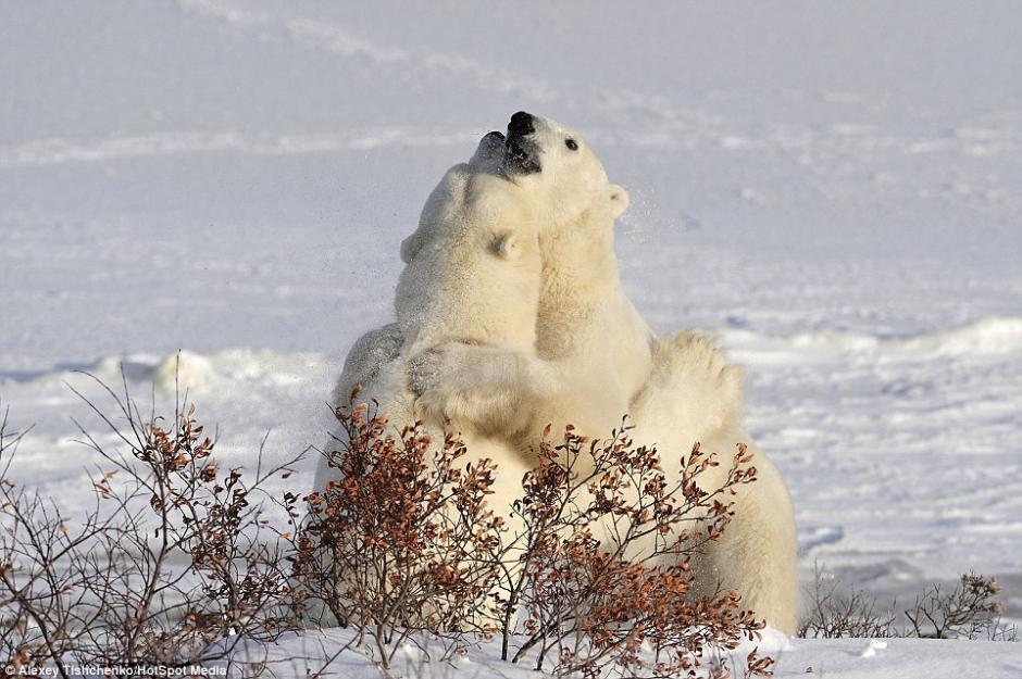 据英国《每日邮报》12月25日报道,43岁的俄罗斯摄影师捕捉到了一组北极熊兄妹在雪地里翻滚玩耍深情拥抱的图像。(网页截图)