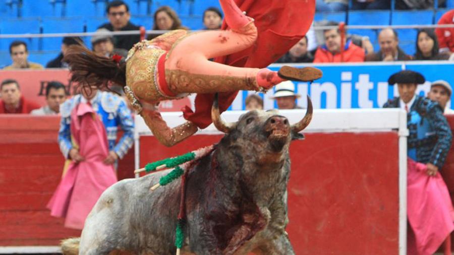墨西哥女斗牛士被公牛顶飞 愤怒公牛扰乱赛场
