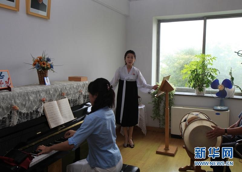 记者采访金元钧平壤音乐大学时的学生唱歌。图片来源:新华网