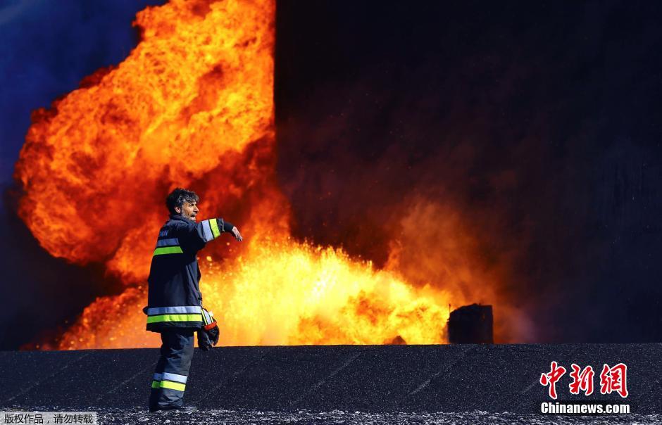 利比亚储油罐被火箭击中起火 火势蔓延数天