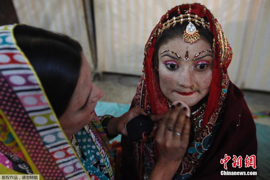 巴基斯坦50对新人集体婚礼 身着传统服饰齐遮面