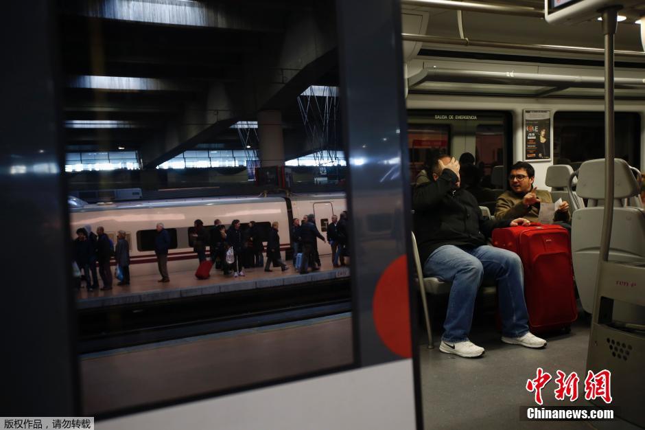 当地时间2015年1月2日,西班牙马德里,据西班牙警方消息,一名男子称将在火车站引爆自己,但在警方将其逮捕后,并未在其背包内发现炸弹。大量乘客被疏散,在警报解除后,乘客准备重新登车。