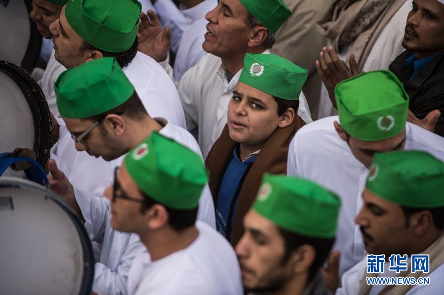 1月3日,在埃及首都开罗,民众参加庆祝“圣纪节”的游行。 “圣纪节”是伊斯兰教的重要节日,为纪念先知穆罕默德的诞辰日。 新华社记者潘超越 摄