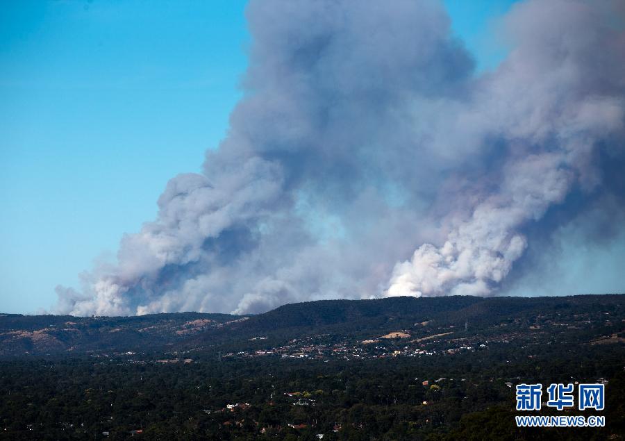 1月2日,在澳大利亚南澳大利亚州阿德莱德山地区,桑普森镇冒出滚滚浓烟。澳大利亚的维多利亚州和南澳大利亚州从1月2日起发生山火,由于风力较大,多地火势截至3日仍未得到控制,且预计将一直持续到下周。山火已导致数十间房屋被毁,但尚无人员伤亡的报道。新华社发(王冠仑摄)