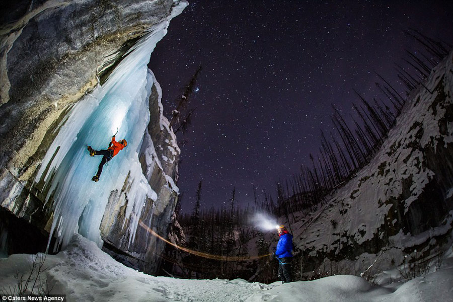 如果冰冻瀑布还不够一饱眼福的话,那么这群星闪耀的夜空也会让攀登者觉得不虚此行的。据英国《每日邮报》2014年12月29日报道,在加拿大的国家公园,当勇敢的攀登者在夜空下努力征服冰冻瀑布时,摄影师保罗·日什卡用相机记录下了这摄人心魄的壮美一幕。