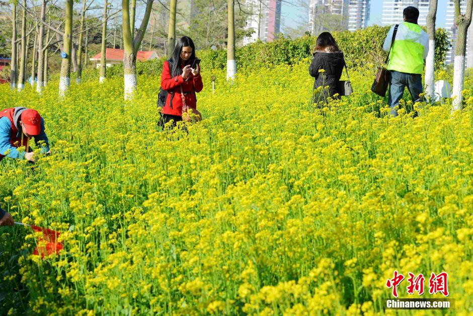 1月3日,厦门一处公园内盛开的油菜花成为假日里市民休闲游玩的好去处。近日,厦门市民灯塔公园内近4000平方米的油菜花不畏严寒,迎着寒风争相怒放,吸引不少市民和游客前来赏花和拍照。张斌 摄