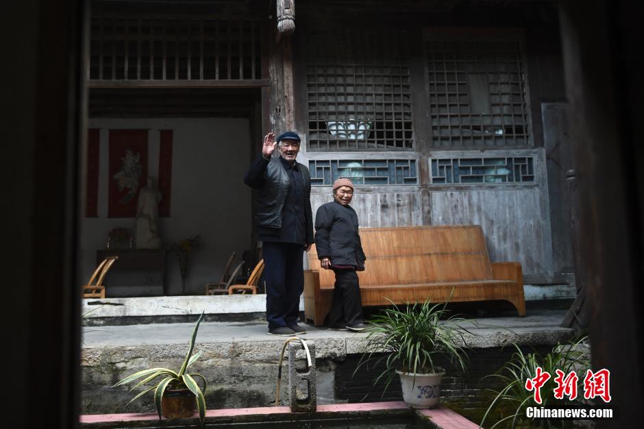 时逢跨年,唐太素、龙菊花两位老人站在自家院子里送别这个时节来访的客人,79岁和76岁的他们在重庆市秀山县洪安镇的这个院子里已经居住了53年。这里位于重庆市秀山县境东南,是重庆、贵州、湖南三省市交界之地,也是沈从文笔下的《边城》原型。中新社发 廖攀 摄