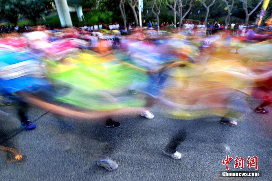 1月3日,厦门国际马拉松参赛选手在比赛中。当日,2015厦门国际马拉松赛在厦门五通灯塔公园鸣枪开赛。今年厦门马拉松只保留全程马拉松和半程马拉松两个项目,共有53个国家和地区的43064人报名参赛。自2003年以来,厦门国际马拉松赛已经成功举办了12届,连续8届荣获“国际田联路跑协会金牌赛事”的称号。中新社发 张斌 摄