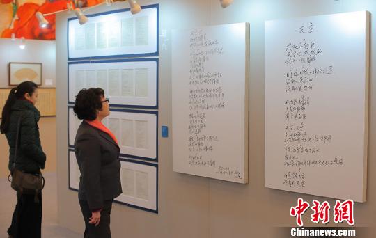 观众被展出的诗人北岛笔墨抄写稿吸引。泱波 摄