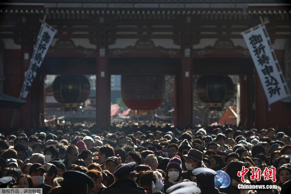 当地时间2015年1月3日,日本东京,日本民众新年首次前往浅草寺,参拜神社,庆祝新年。