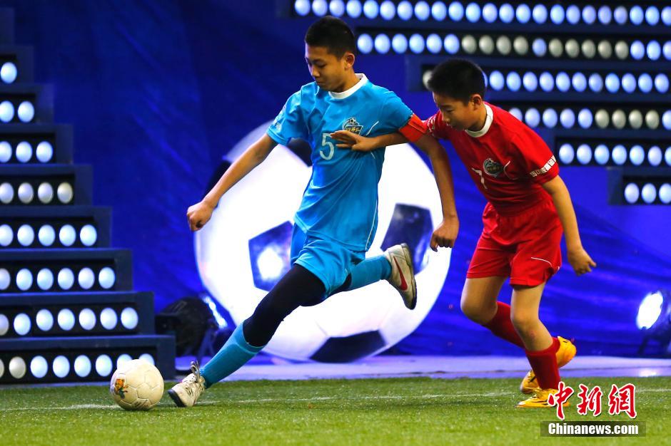 1月3日,“谁是球王”中国民间足球争霸赛华北大区决赛在山东淄博市展开争夺,山东新建路小学队、山东蓝色海洋队和山东黄海队从来自北京、天津、内蒙古和山东四省市的12支队伍中脱颖而出,分获华北大区娃娃组、青少年组和社会组“球王”。“谁是球王”中国足球民间争霸赛由中央电视台、国家体育总局、教育部等部门联合主办,活动旨在为普通百姓搭建一个全民健身、大众参与的圆梦平台。比赛分为娃娃组、青少年组和社会组三个级别,按照海选赛、大区赛、总决赛三个阶段进行。图为山东新建路小学队(蓝)在比赛中。 中新社发 富田 摄