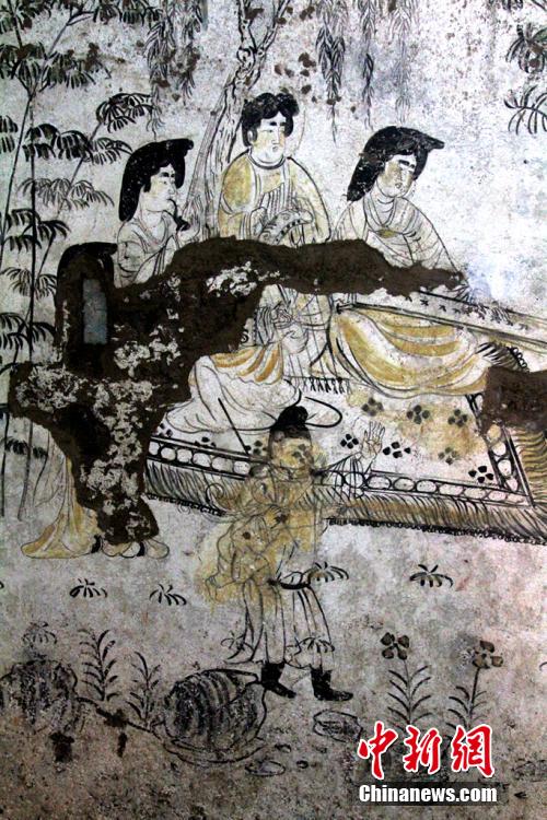 12月30日,考古人员对西安唐代宰相韩休墓甬道的壁画进行揭取保护。陕西历史博物馆壁画保护修复研究中心副主任杨文宗介绍,墓葬壁画因会受到侵蚀、剥落、病害等影响,保护难度很大。考古人员对韩休墓甬道壁画进行了清洗加固,空鼓回贴等大量准备工作后,开始对甬道的壁画先行揭取,以最大限度保护壁画。2014年,考古人员在位于西安市长安区的唐代韩休夫妻合葬墓,发现了清晰可见的精美壁画。墓室北壁东侧的山水画,是目前考古发现的唐代最早的独屏山水画,弥补了壁画发展史,将中国山水画的成熟期提前至唐代。田进 摄