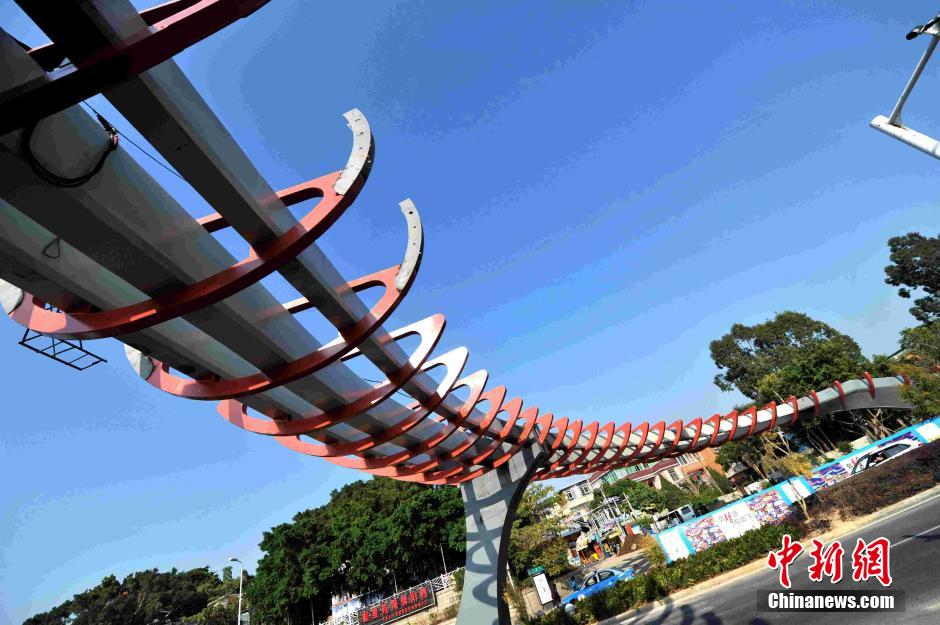 1月4日,被誉为“中国最文艺渔村”的厦门曾厝垵路口,一座名为“渔桥”造型别具一格的人行天桥即将完工。据了解,和城市中其它天桥相比显的十分与众不同,在设计阶段,该天桥就充分结合了当地文化特色。其主梁采用异型钢结构,其外形像是鱼骨,又像是传统渔船的结构,融合当地百年渔村历史,看上去“鱼”感十足。张斌 摄