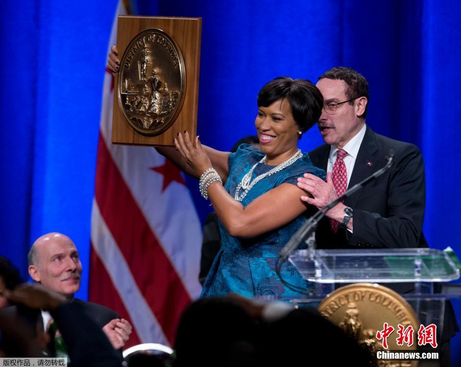 当地时间2015年1月2日,美国华盛顿,随着新年的到来,美国首都华盛顿迎来了新任市长穆丽尔·鲍泽,她也是华盛顿历史上第一位非裔女市长。现年42岁的穆丽尔·鲍泽在去年11月的普选中以超过54%的得票率,超过第二名三万多张选票的优势成功当选。在周五的就职仪式上,鲍泽在家人陪伴下宣誓就职,随后从前任市长文森特·格雷手中接过华盛顿市徽,并发表演讲。