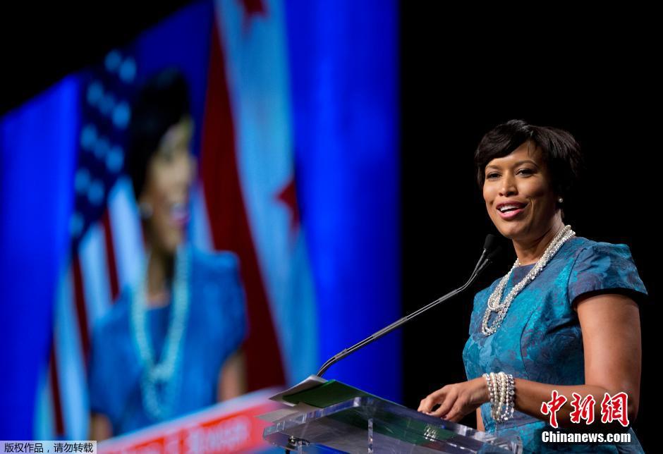 当地时间2015年1月2日,美国华盛顿,随着新年的到来,美国首都华盛顿迎来了新任市长穆丽尔·鲍泽,她也是华盛顿历史上第一位非裔女市长。现年42岁的穆丽尔·鲍泽在去年11月的普选中以超过54%的得票率,超过第二名三万多张选票的优势成功当选。在周五的就职仪式上,鲍泽在家人陪伴下宣誓就职,随后从前任市长文森特·格雷手中接过华盛顿市徽,并发表演讲。