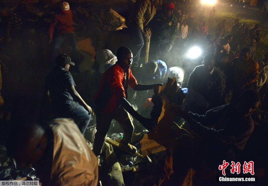 当地时间2015年1月4日,肯尼亚首都内罗毕,一楼房发生倒塌事故。据悉,该事故目前已致十余人死伤,仍有多人被困在房屋废墟中。