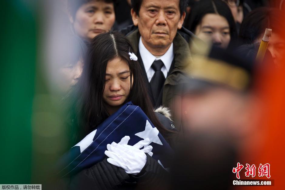 当地时间1月4日,美国纽约,遭黑人枪杀的华裔警察刘文建葬礼在布鲁克林殡仪馆里举行,刘文建的亲人朋友,政界人士、数千名警员和民众出席了葬礼。刘文建的灵车由纽约警察沿街护送。