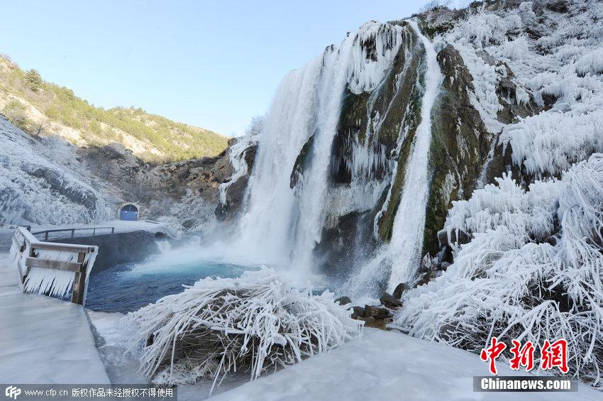 当地时间2014年12月31日,克罗地亚,当地急剧降温,导致Zablace海滩附近的海水及瀑布结冰。