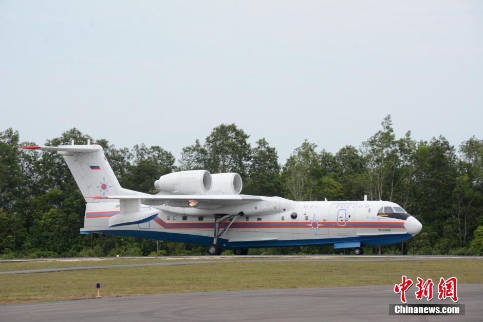 1月3日晚,由25名救援人员组成的俄罗斯搜救队伍抵达印尼庞卡兰布翁失事亚航搜救中心,并从4日起参与印尼亚航失事客机联合搜救。当天飞抵庞卡兰布翁机场的有俄罗斯1架Be-200水陆两栖飞机。他们的主要任务是寻找失事亚航的黑盒子、漂浮物、飞机残骸和遇难者。 中新社发 顾时宏 摄
