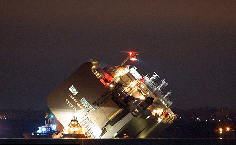 据英国《每日邮报》当地时间1月4日报道,英国一艘巨型货轮Hoegh Osaka在从南安普顿出发后不久,撞击上了名为Bramble Bank的堤坝,随即发生机械故障,并搁浅在了距离怀特岛不远的地方,船身发生45度倾斜,25名船员全都获救,其中一名船员腿部受伤。目前救援工作还在进行中,当地媒体称,货轮有望在下一轮潮汐到来的时候得以恢复正常行使状态。(网页截图)