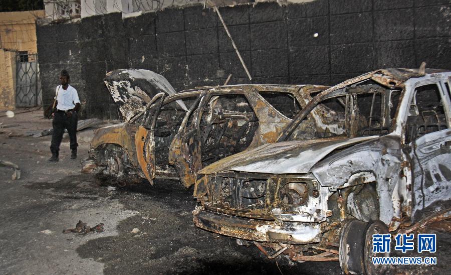 这是1月4日在索马里首都摩加迪沙一个军营附近拍摄的汽车炸弹袭击现场。索马里安全部门4日证实,索马里首都摩加迪沙一个军营附近当天发生汽车炸弹袭击事件,造成至少6人死亡,另有多人受伤。 新华社/美联