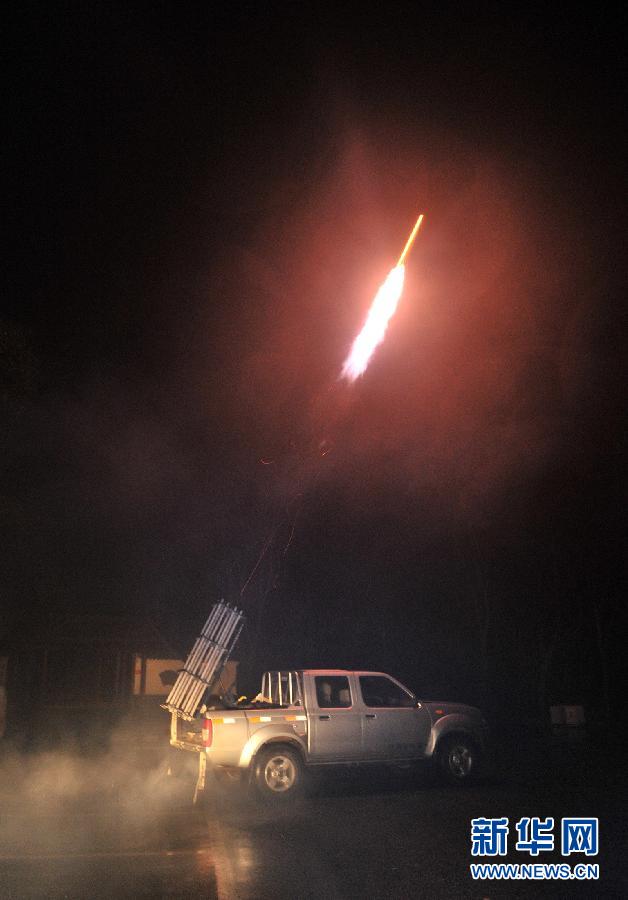 1月5日,南充市人工影响天气办公室工作人员发射增雨火箭弹。 1月3日开始,四川南充城区达到重度污染。5日凌晨,气象部门监测到南充市将有一次弱降水过程,南充市人工影响天气办公室工作人员出动移动车载火箭车,进行人工增雨,为天空洗尘。新华社发(成潮生 摄)