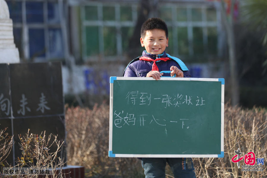孟伟成,男,11岁,安徽省蚌埠市固镇县仲兴乡仲兴小学六(2)班学生 中国网图片库 李斌/摄