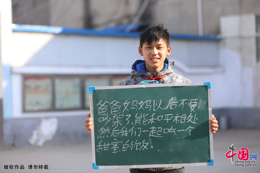 新年愿望:爸爸妈妈以后不要吵架了,能够和平相处,然后我们一起吃一个甜蜜的饭。