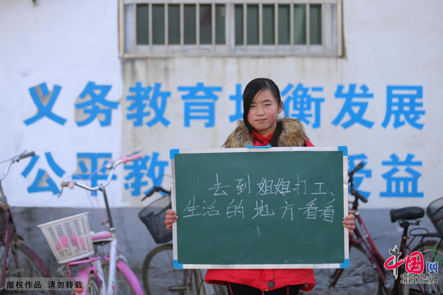 薛妮,女,13岁,安徽省蚌埠市固镇县仲兴乡仲兴小学六(2)班学生 中国网图片库 李斌/摄