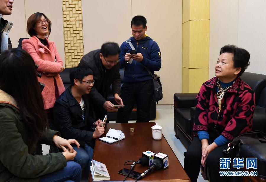 2014年12月31日,瞿焰(右一)向记者讲述12月25日在南宁飞往泰国曼谷的OX619航班上抢救泰国空乘的过程。 “我只是做了一件很平常的事,没想到获得这么多的赞誉。”2014年最后一天,广西柳州市人民医院退休医生、58岁的瞿焰带着孙子从泰国旅游回国,她没想到自己日前做的一件“平常小事”让自己成了“名人”。在南宁飞往曼谷的国际航班上,一名泰国空乘人员突发疾病,有着40年从医经验的瞿焰迅速出手救助,空乘得以转危为安……她的义举赢得中泰两国网友纷纷点赞,被称为“中国好大妈”“中国好游客”。新华社记者 李斌 摄