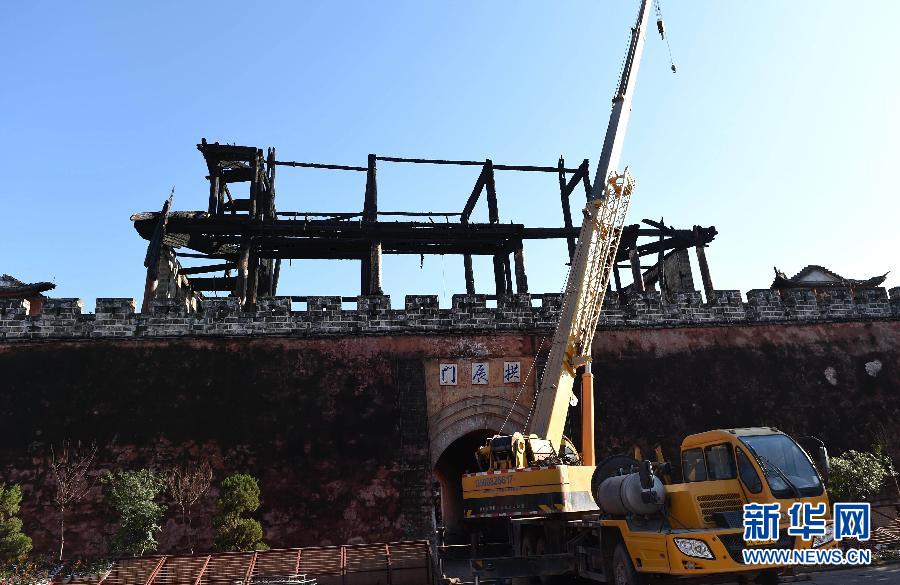 这是1月3日拍摄的被大火烧毁的云南巍山古城拱辰楼。 1月3日凌晨,拥有600多年历史的云南巍山古城拱辰楼,在一场燃烧了2个小时的大火中成为废墟,仅剩几根焦黑的木梁和断壁残垣。 “新华视点”记者现场调查发现,这起火灾并没有以往古城火灾常见的消防水源不足、道路狭窄等问题。那么,究竟是什么导致了如此惨重的损失?新华社记者 蔺以光 摄