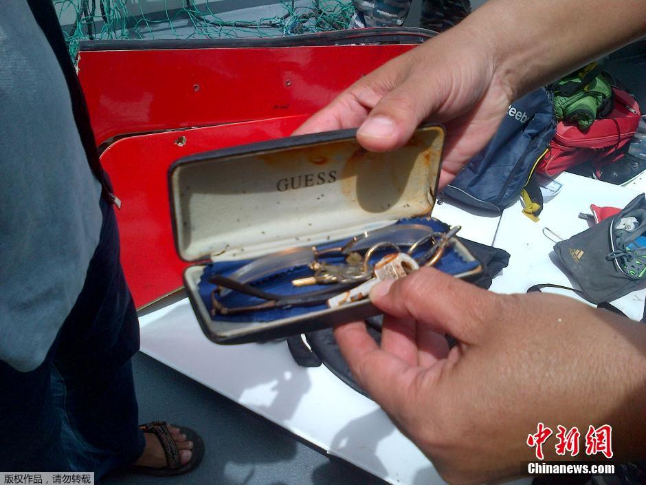印尼海军展示亚航失事客机残骸及乘客遗物