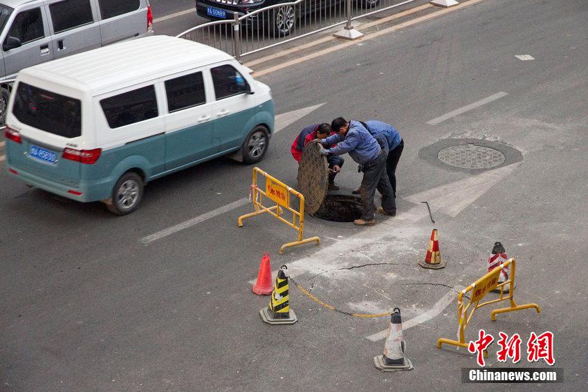 2015年1月4日,河南省郑州市文化路上与黄河路交叉口出现了两处塌陷,其中一处塌陷过深,几处裂缝明显,工作人员已经用围挡围起来警示过往车辆。该塌陷处位于由南向北车道的中央,车辆行人纷纷绕行。