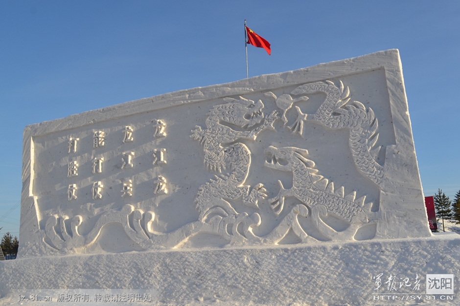 中国“北极”官兵制作冰雕塑造梦幻边关