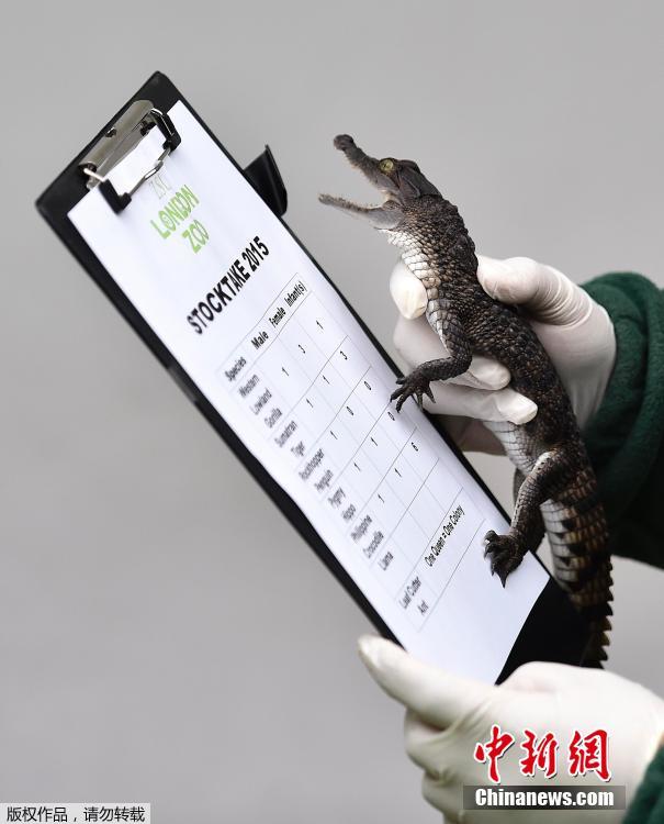 当地时间2015年1月5日,英国伦敦,伦敦动物园正在进行年度盘点,管理员将逐一清点园中的超过750种动物。今年该园新添了三只苏门答腊虎幼崽、六条濒危的菲律宾鳄以及九只洪堡企鹅幼鸟。