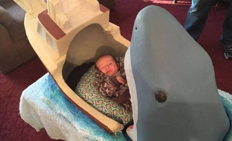 据英国《镜报》1月4日报道,英国男子约瑟夫·利吉内拉(Joseph Reginella)是斯皮尔伯格惊悚电影《大白鲨》的超级粉丝,日前他仿造电影场景,为只有两个月的小侄子迈克尔·梅兰赛奥(Michael Joseph Melaccio)献上了一张“大白鲨吞小船”造型的婴儿床作为礼物。图片来源: 国际在线