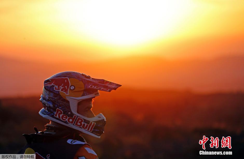 当地时间1月5日,2015达喀尔拉力赛第二日,卡洛斯帕兹-圣胡安赛段,来自西班牙的摩托车手Marc Coma正在调整状态,准备进入第二赛段的征程。