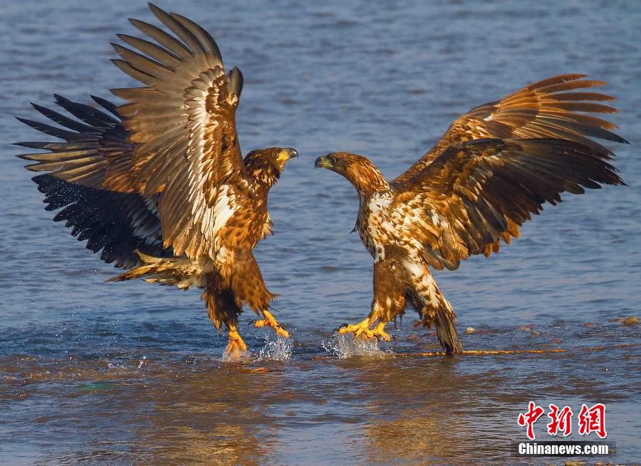 1月6日讯,入冬以来,海雕主要觅食鱼类,摄影爱好者近日在新疆伊犁河畔拍摄到了白尾海雕捕食鱼的精彩瞬间。杨永光 摄