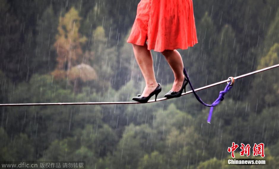 2015年1月5日报道,25岁的Faith Dickey穿着细高跟鞋在数千英尺的高空小心翼翼的走着钢丝。这一让人心跳加速的场面发生在捷克的女子高空绳索集会上。来自美国德州奥斯汀的Faith与极限运动爱好者Basia Sobanska及Ela Ostrowska一起为我们带来了一场独具女性魅力的高空钢丝秀。