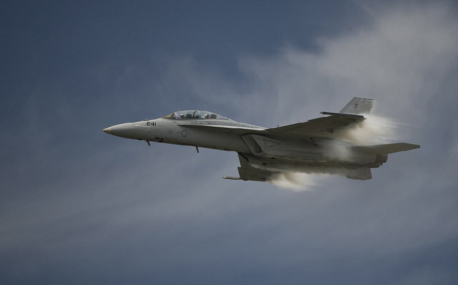 当飞机以比音速更快的速度飞行时,就可形成冲击波。(网页截图)