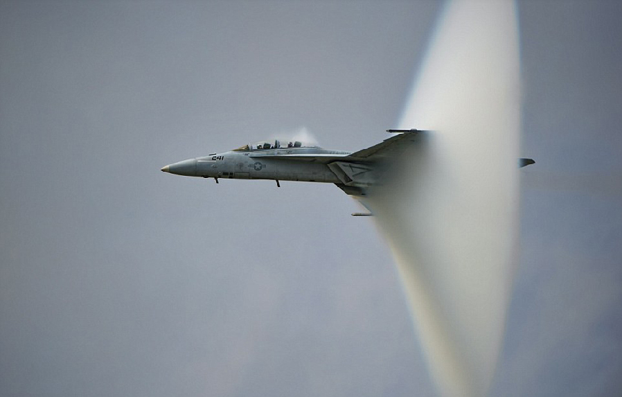 一架海军超级大黄蜂战斗机正在航空展上飞行,其最高时速可达1915公里。(网页截图)