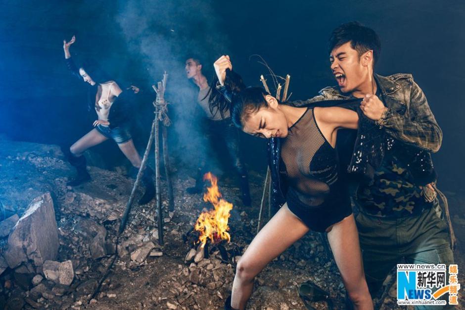 陈赫伊一时尚大片 穿热裤寒冬山洞里拍摄