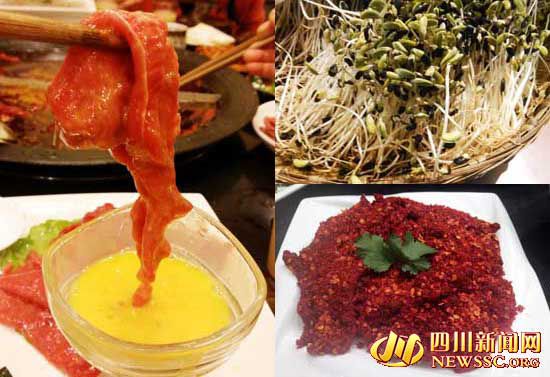 柒口锅经典菜品推荐:左为柒记滑蛋牛肉
